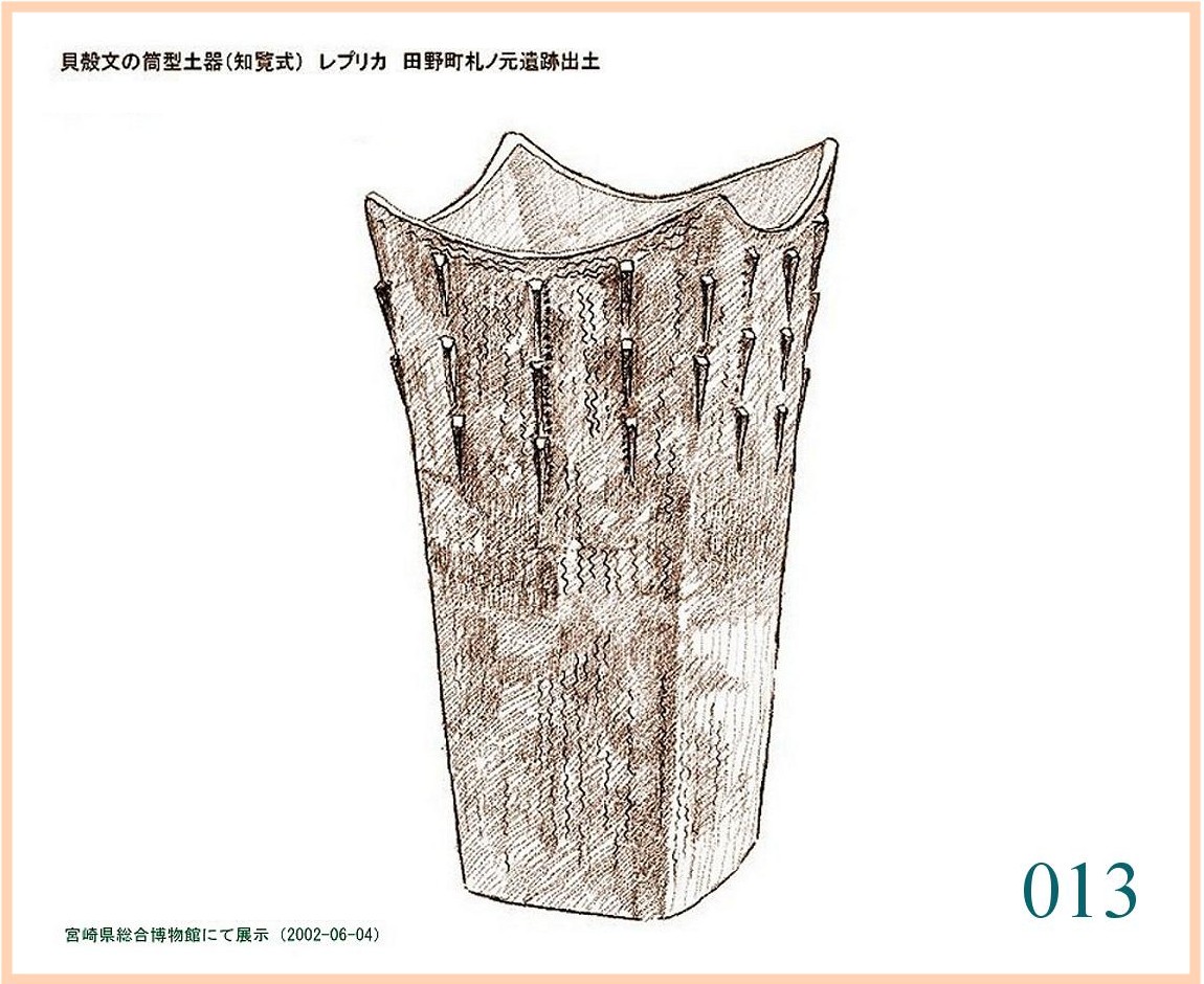 「貝殻文の筒形土器」 ・ BC.8000~6000年 ・ 宮崎県総合博物館 ・ 宮崎市