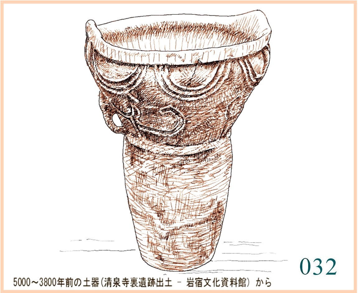 (「壺形土器」 ・ B.C.1000~300年 ・八戸市縄文学習館 ・ 青森県八戸市 )